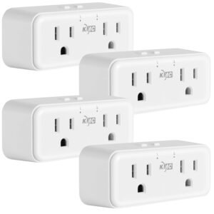 KMC Smart Plug Duo 4-Pack, 2-Outlet Wall Plug Extender, Smart Outlet Splitter for Smart Home, Compatible with Google & Alexa, No Hub Required, WiFi Outlet, White