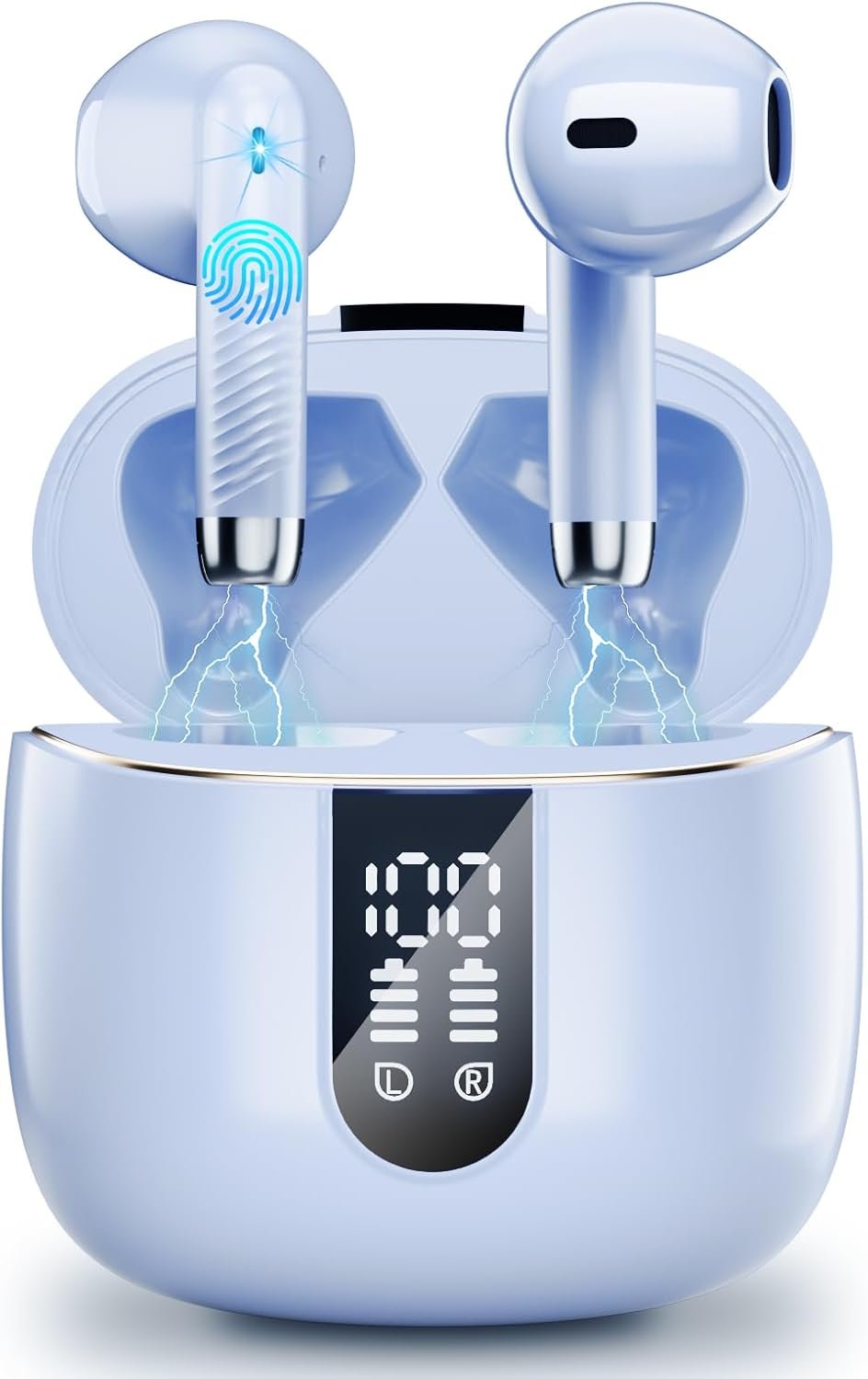 Wireless Earbud, Bluetooth 5.4 Headphones New 40H Ear Bud with LED Power Display, in-Ear Bluetooth Earbud HiFi Stereo Sound with 4 Mics, IP7 Waterproof Wireless Earphones USB-C for Android iOS, Purple