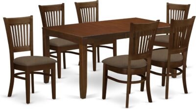East West Furniture LYVA7-ESP-C 7 Piece Kitchen Table Set Consist of a Rectangle Dining Table with Butterfly Leaf and 6 Linen Fabric Dining Room Chairs, 36×66 Inch, Espresso