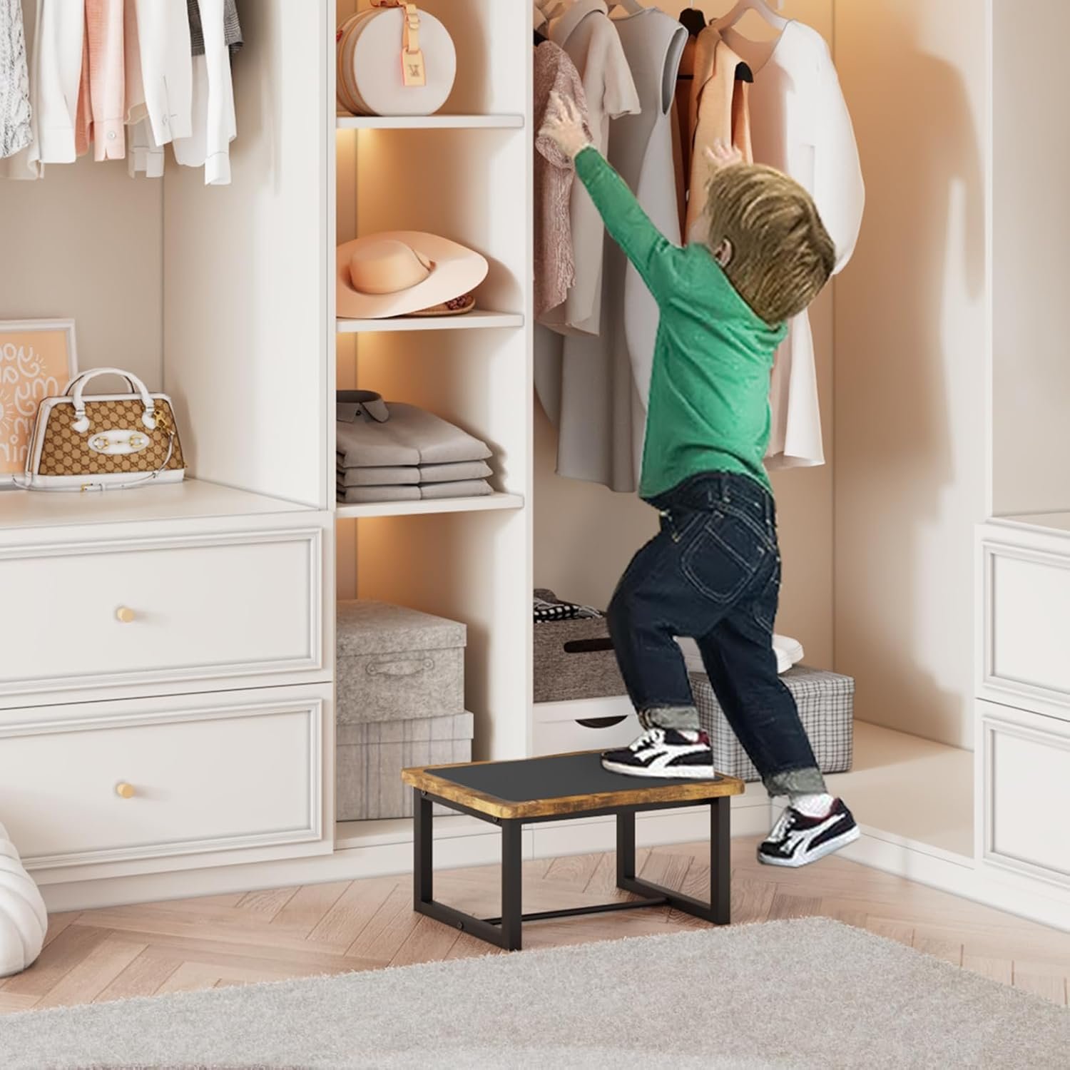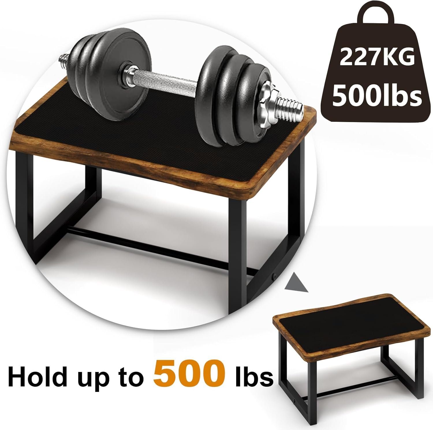 Wooden Step Stool with Non-Slip mat,Bed Steping Stool for Adult Hold up to 500lbs,Wood One Step for Kitchen, Bedroom, Living Room, Bathroom… (Brown)