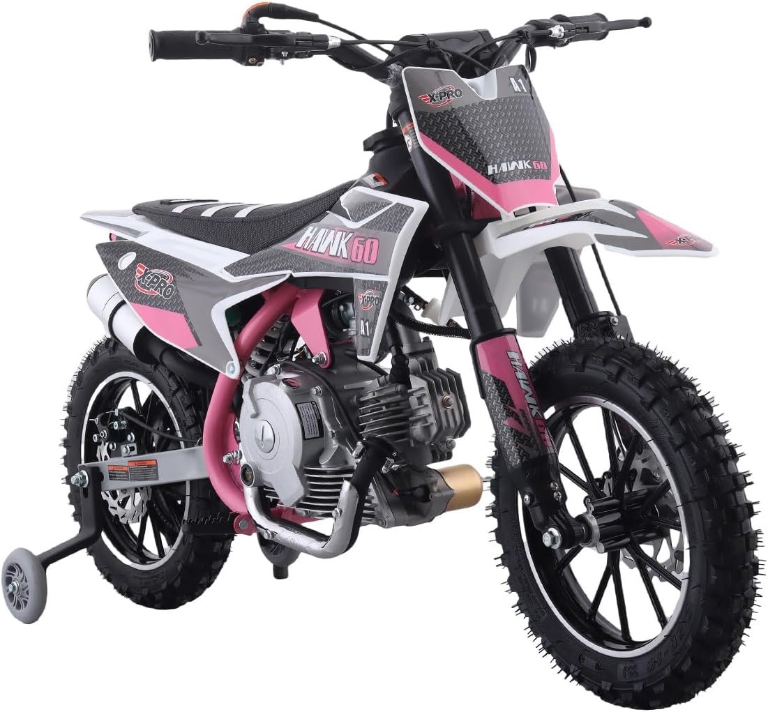 X-PRO Hawk 60 Gas Powered Dirt Bike with CVT Transmission, Electric Start, Disc Brake! 10″ Wheels! with Free Training Wheels!