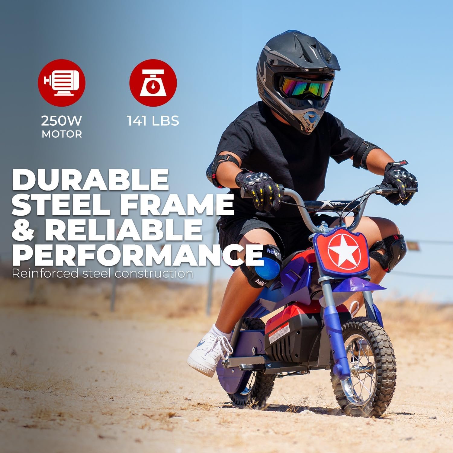 XtremepowerUS Electric Dirt Bike, 24V 250W Battery Powered Mini Dirt Bike, Electric Ride-On for Blue/Red