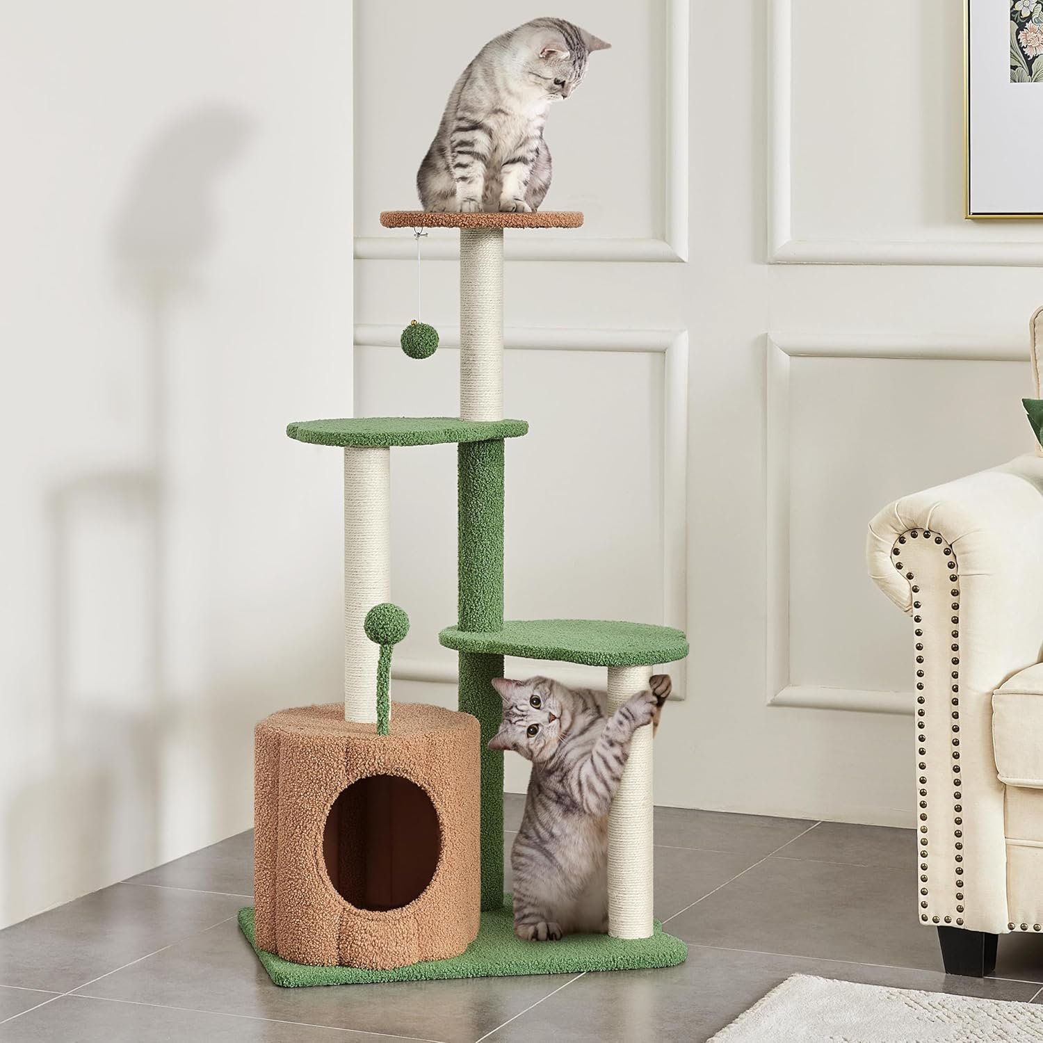 Yaheetech 42in Cactus Cat Tree, Green Cat Tree Tower w/Pumpkin Condo, Multi-Level Perches, 3 Scratching Posts, Teasing Ball for Indoor Kittens