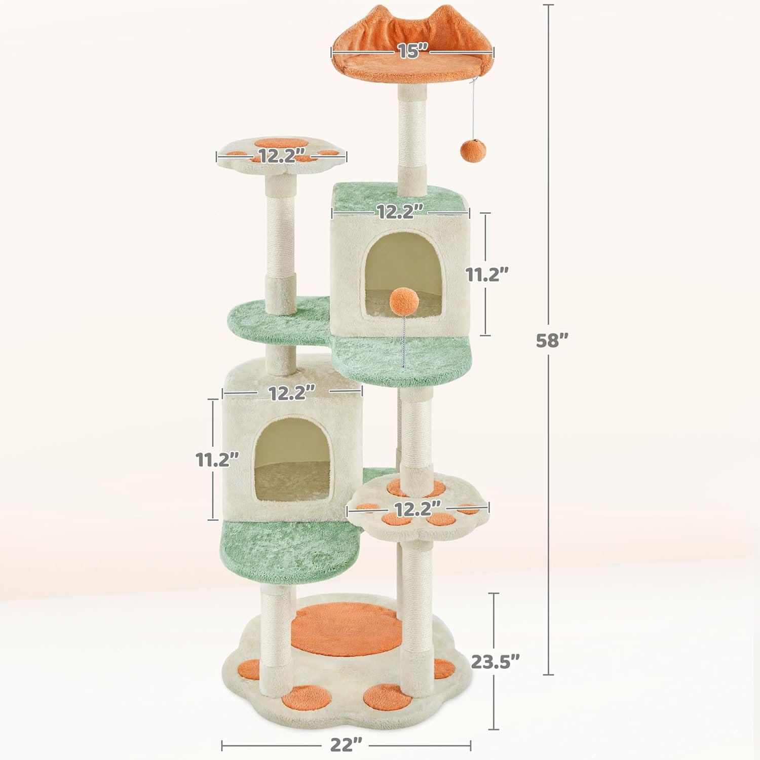 Yaheetech 57.5in Cat Tree Tower, Multi-Functional Activity Center w/Cat Paw-Shaped Platform, Scratching Posts, 2 Condos and Dangling Balls for Indoor Cats to Relax