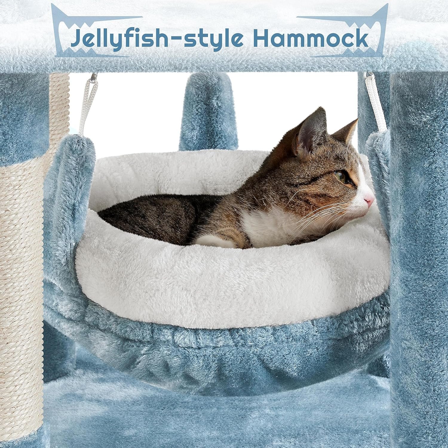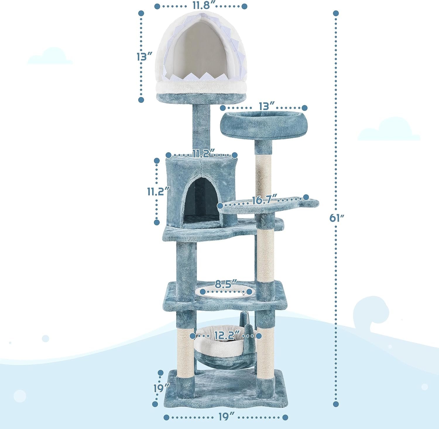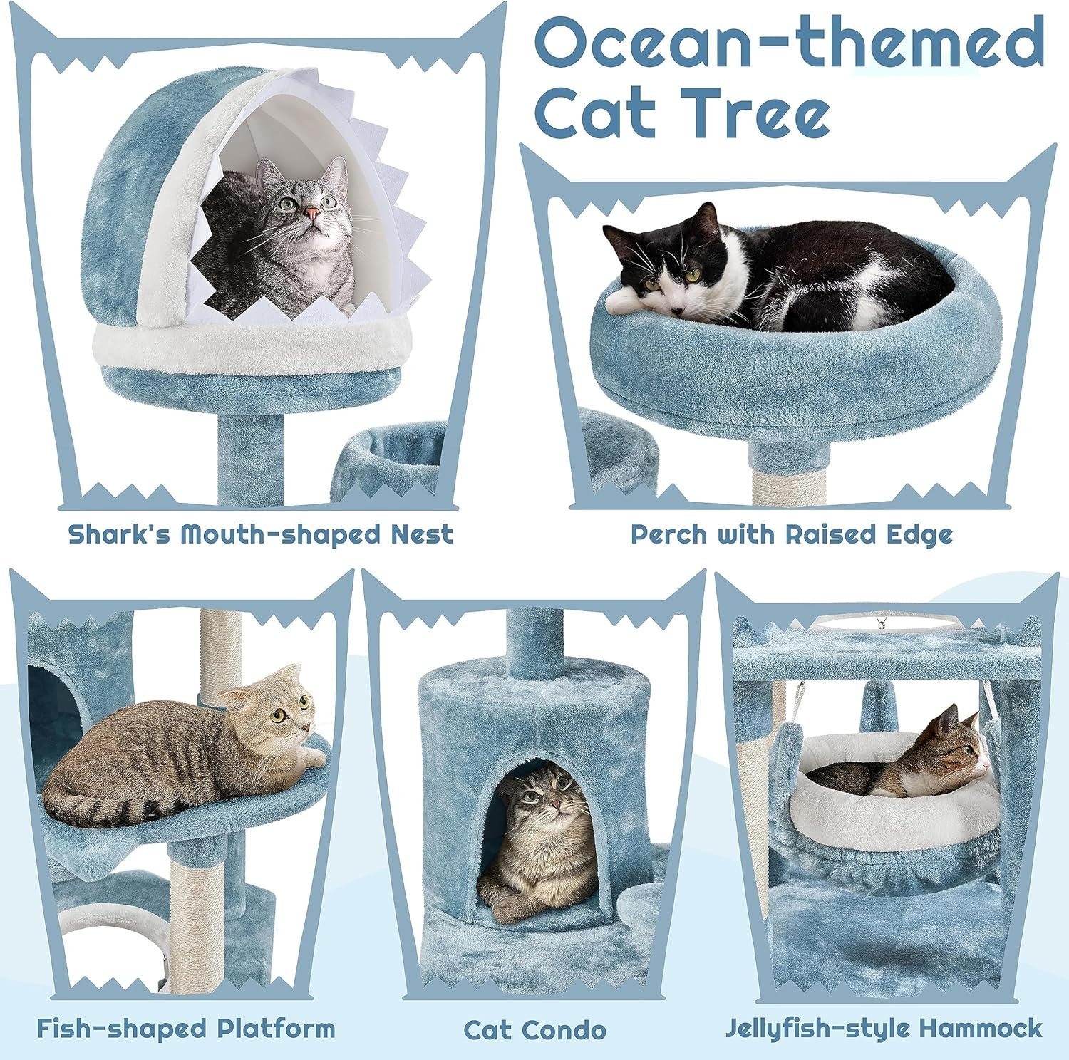 Yaheetech 61in Tall Ocean-Themed Cat Tree, Multi-Level Cat Tower with Shark’s Mouth-Shaped Nest, Fish-Shaped Platform, Sisal Scratching Posts, Plush Pet Bed Furniture as Kitty Activity Center