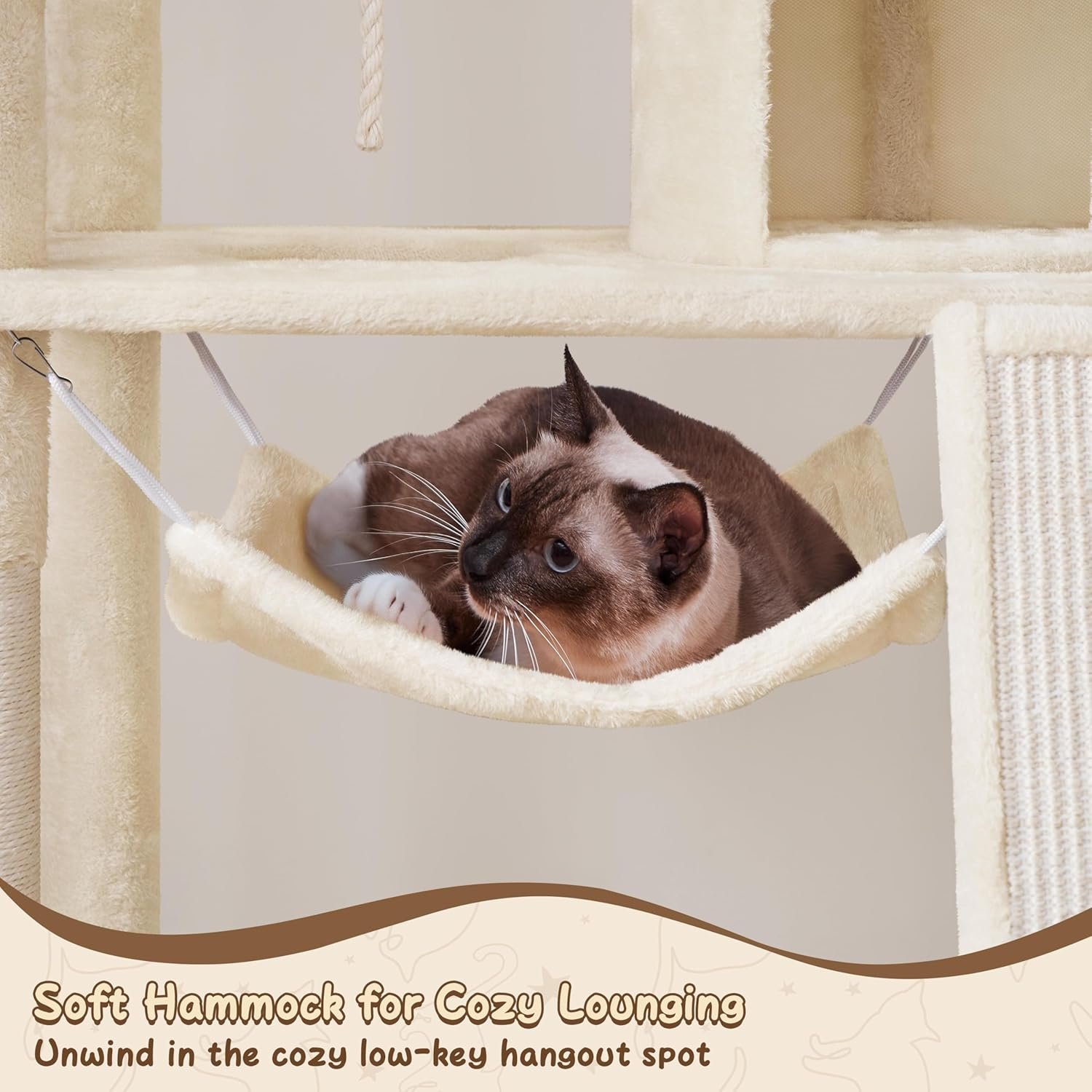 Yaheetech 63.5in Extra Large Cat Tree Condo with Sisal-Covered Scratching Post Plush Perch Hammock, Cat Tower Activity Center Kitten Furniture Play House