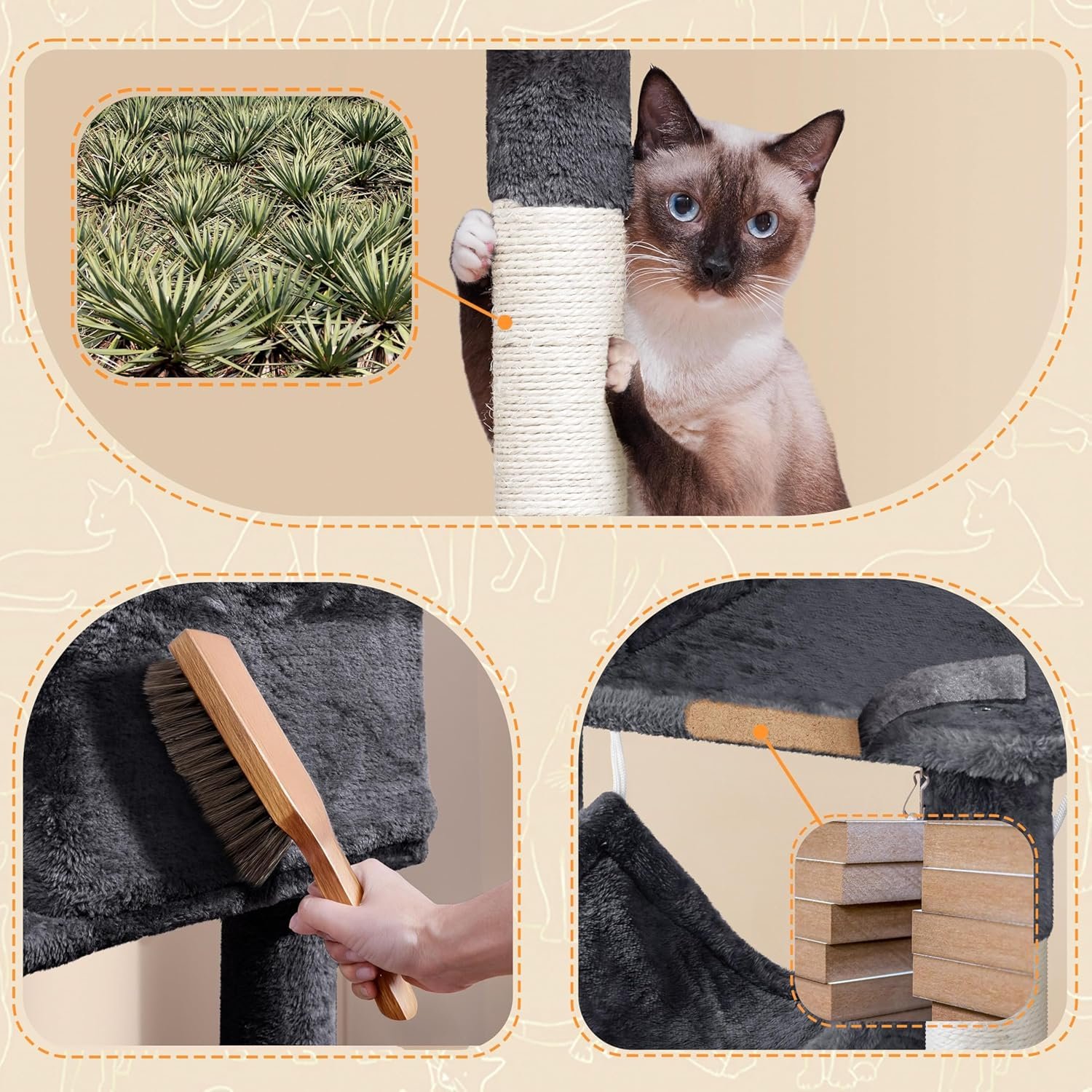 FEANDREA Cat Tree, Cat Tower for Indoor Cats, 56.3-Inch Cat Condo with Scratching Posts, Hammock, Plush Perch, Light Gray UPCT15W