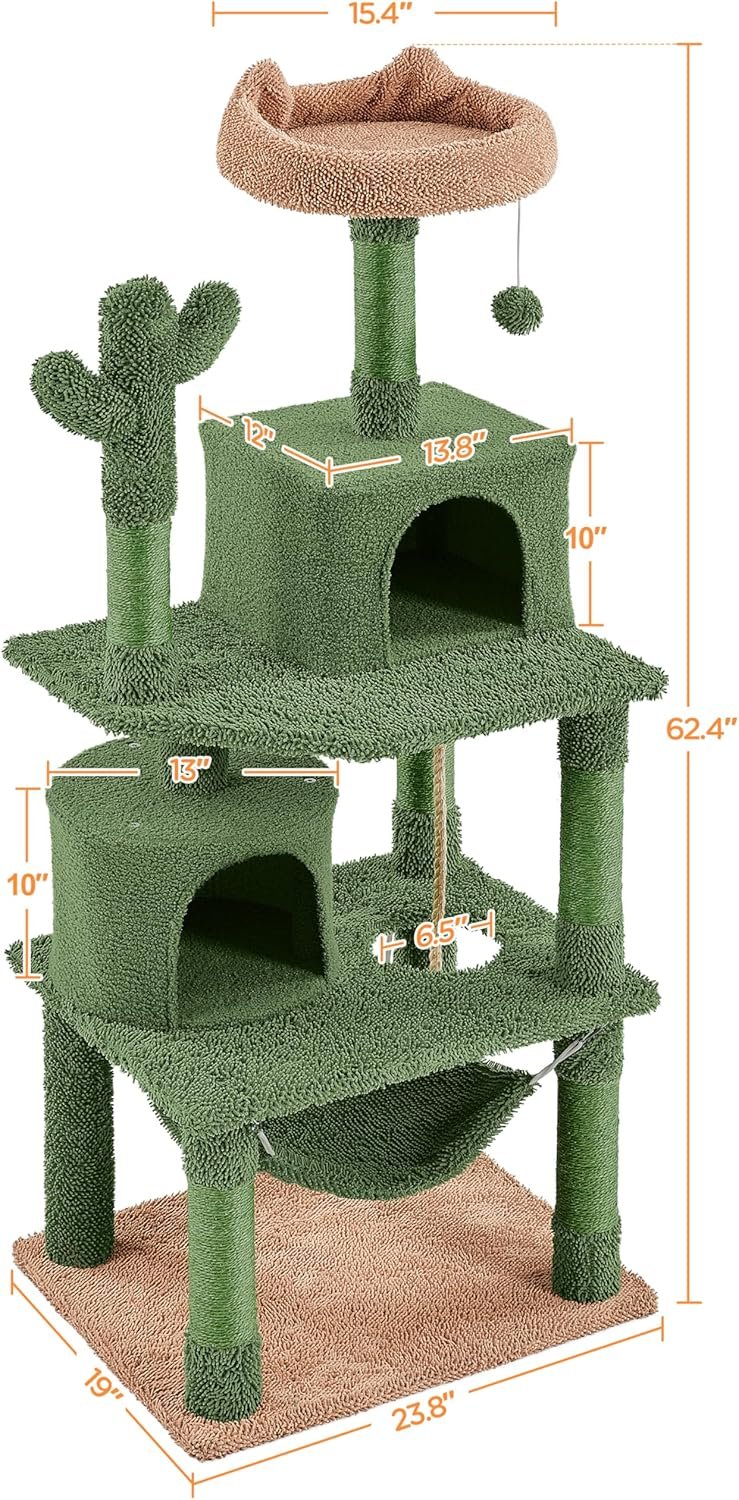 Yaheetech Cactus Cat Tree for Indoor Cats, 62in Cat Tower with Scratching Posts, Hammock & Dangling Ball, Multi-Level Condo Activity Center Furniture