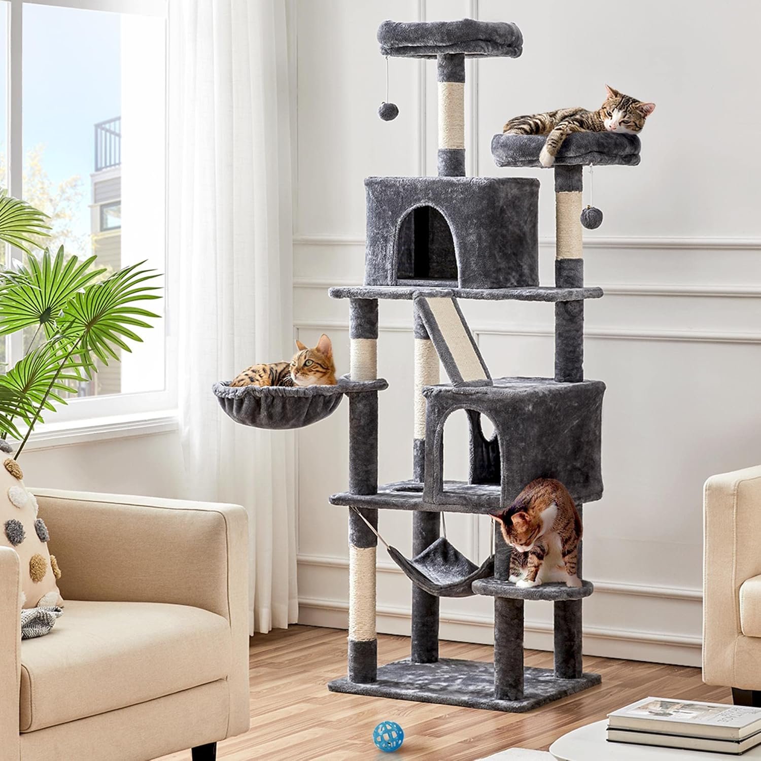 Yaheetech Cat Tree, 71.5in Cat Tower for Indoor Cats, Cat Tree with 2 Cozy Condos, 2 Padded Perches, Scratching Posts & Ramp, Hammock, Cat House Activity Center, Dark Gray