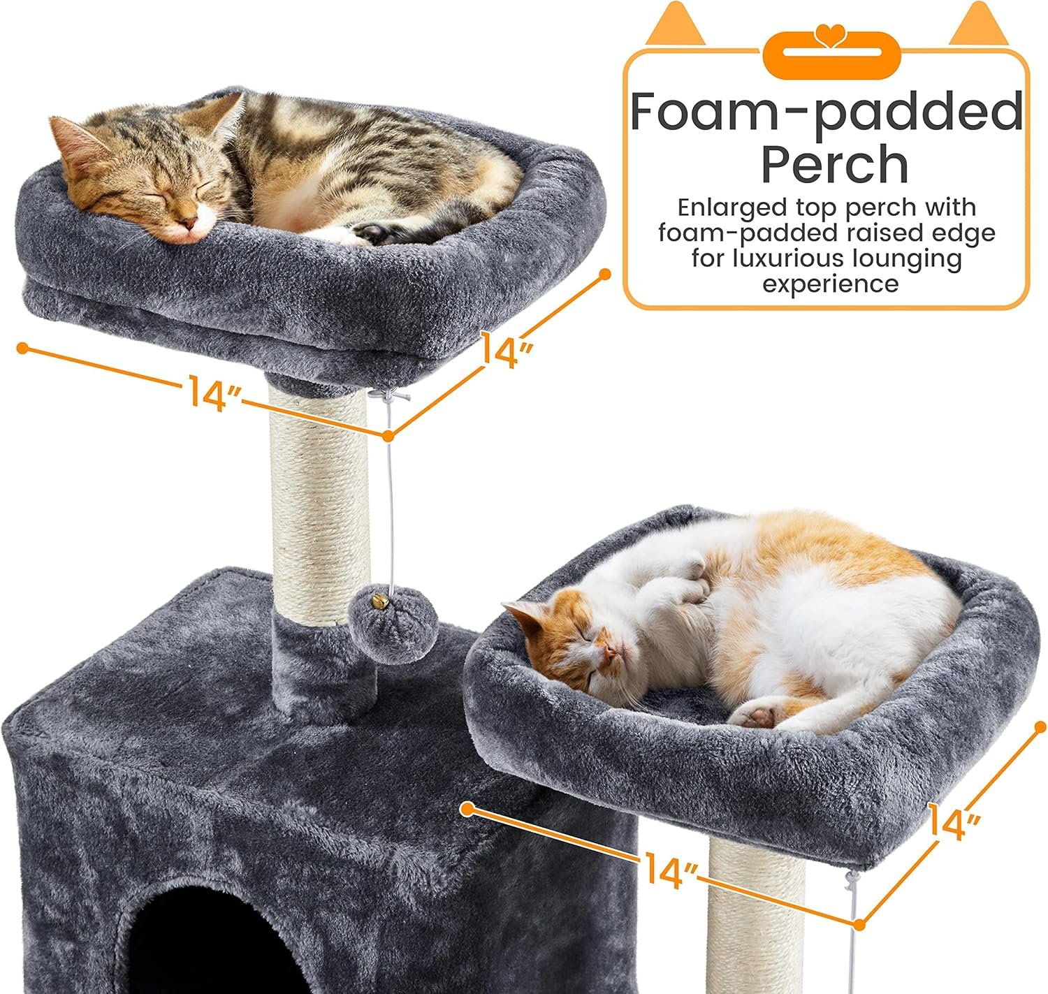 Amazon Basics 30-Inch Cat Tree Tower, Activity Center with 2 Plush Condos, Sisal Scratching Post and Hanging Pompom, Gray