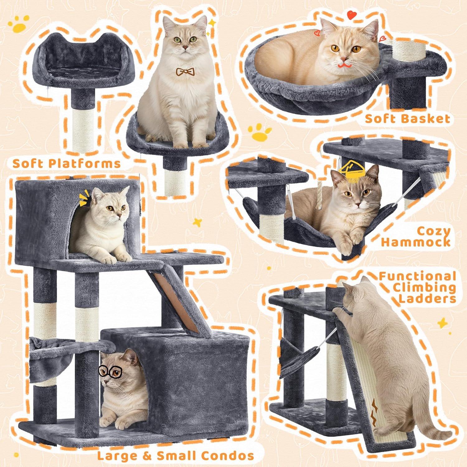 Yaheetech 62.5inches Cat Tree Cat Tower Cat Condo with Platform & Hammock, Scratching Posts for Kittens Pet Play House with Plush Perch for Indoor Activity Relaxing, Dark Gray