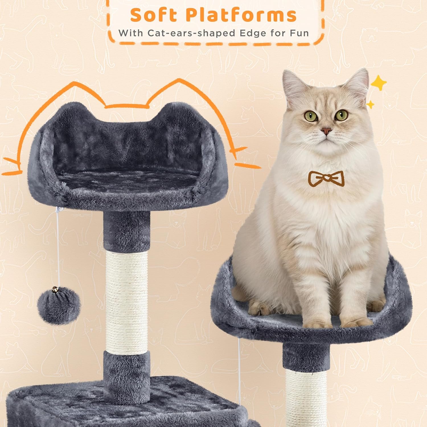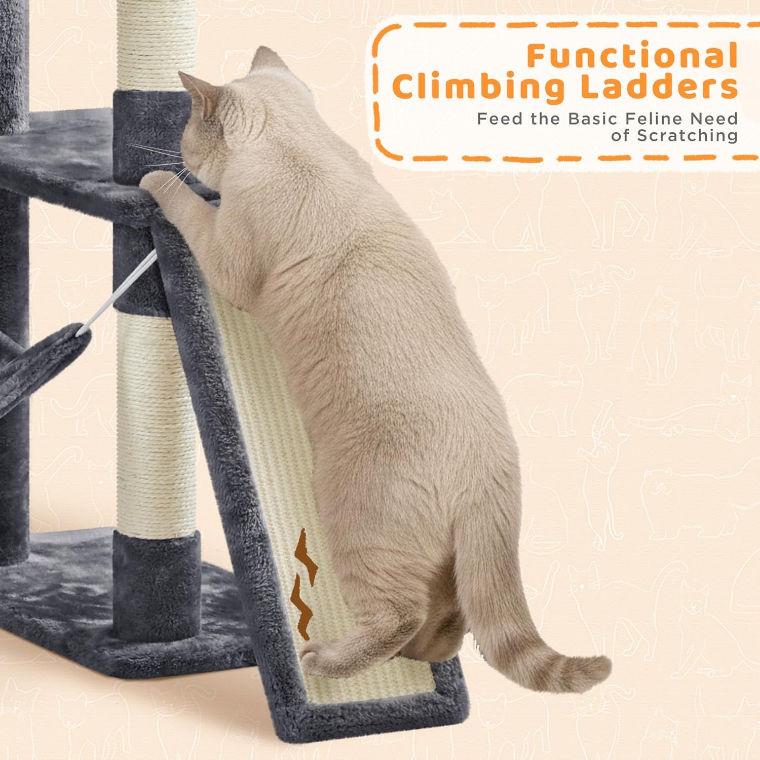 Hey-brother Cat Tree, 53 inch Cat Tower for Indoor Cats, Cat House with Padded Platform Bed, Toy Balls, Large Cozy Condo, Hammocks and Sisal Scratching Posts, Smoky Gray MPJ019-SG