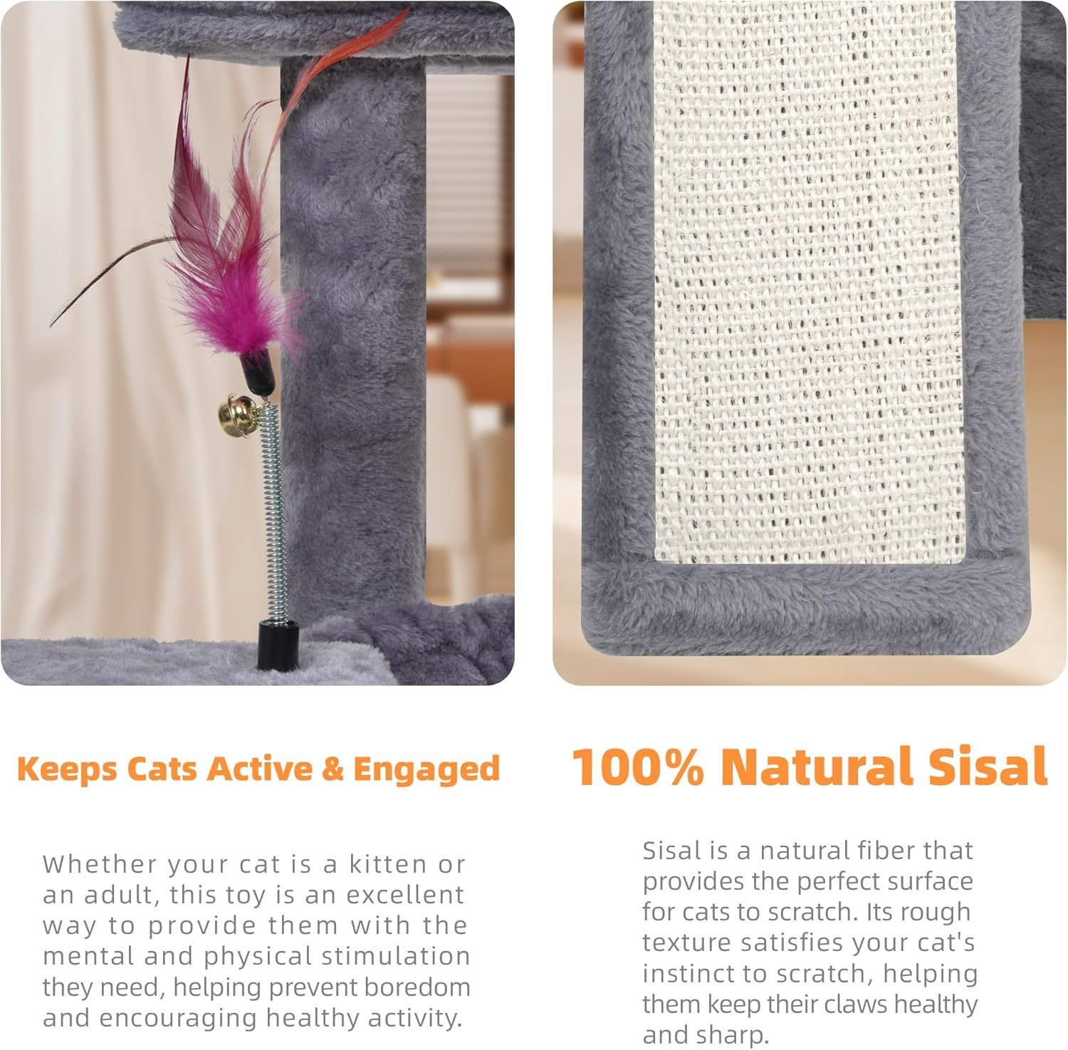 YOUPET Cat Tree with Cat Scratching Post for Indoor Cats, Cat Tower with Scratching Board and Playful Toy Balls, Cat Tree Tower with Cozy Hammock,Grey