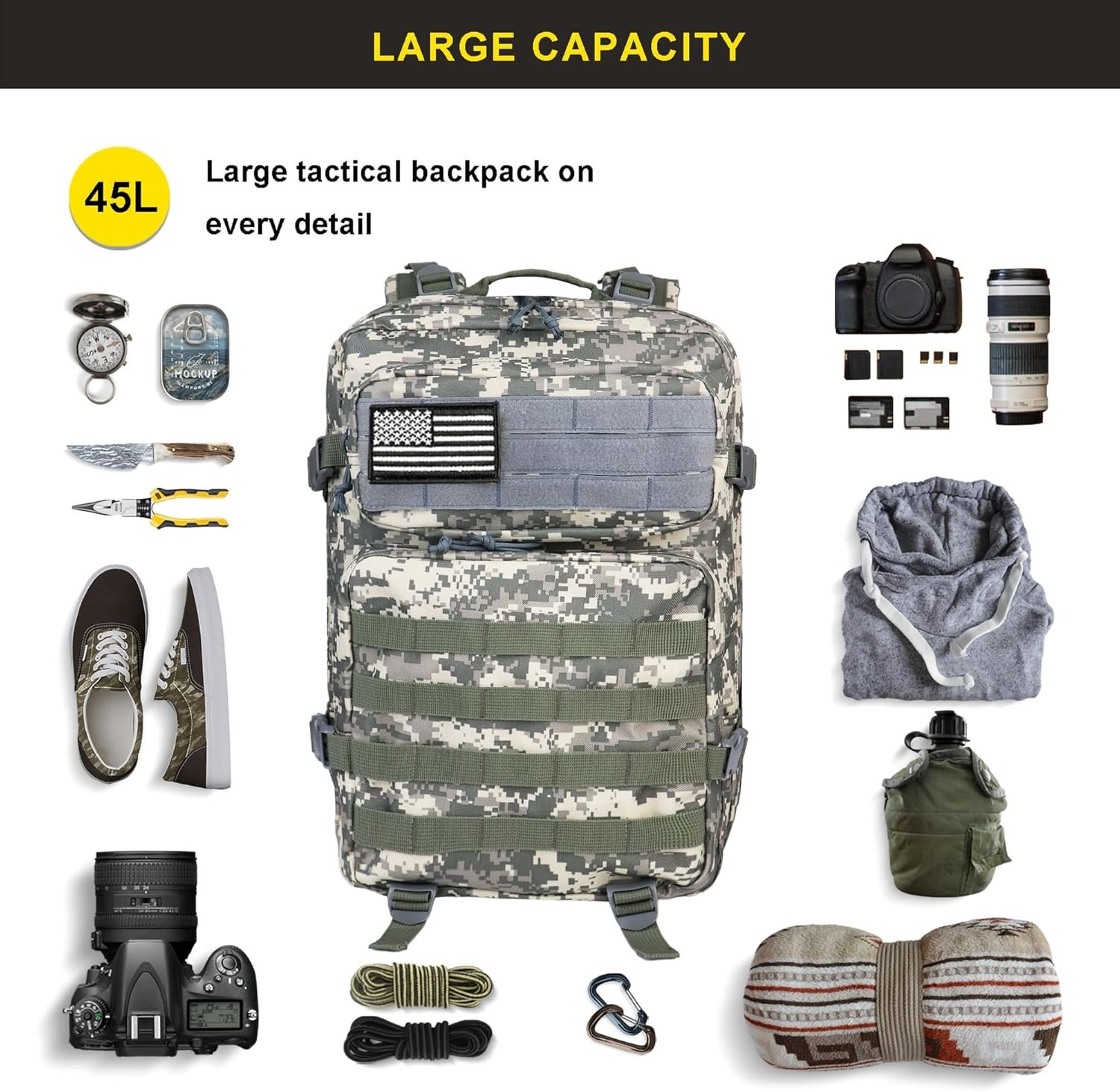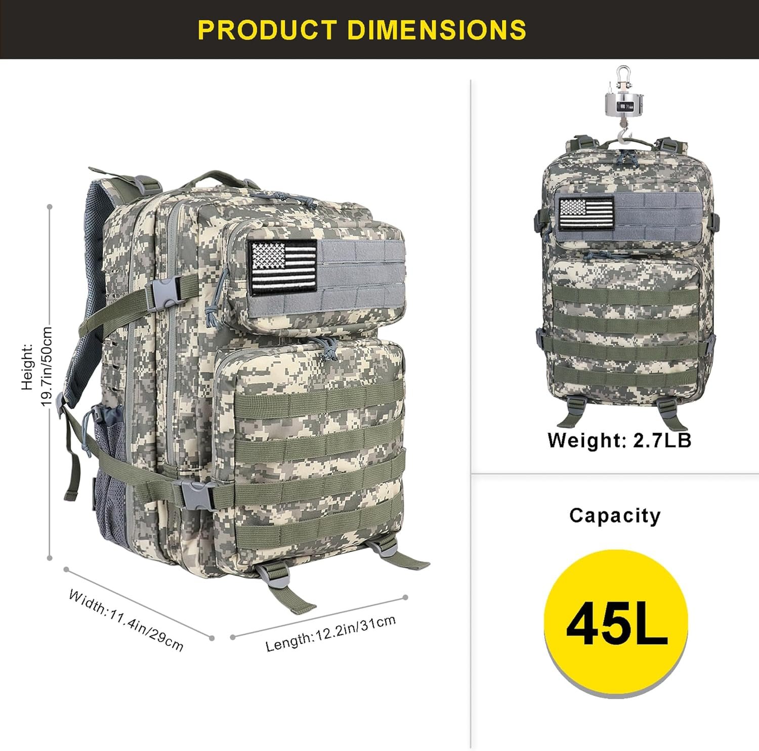 Zavothy 45L Military Tactical Backpack for Men and Women Army 3 Day Assault Pack Bag Large Rucksack with Molle System
