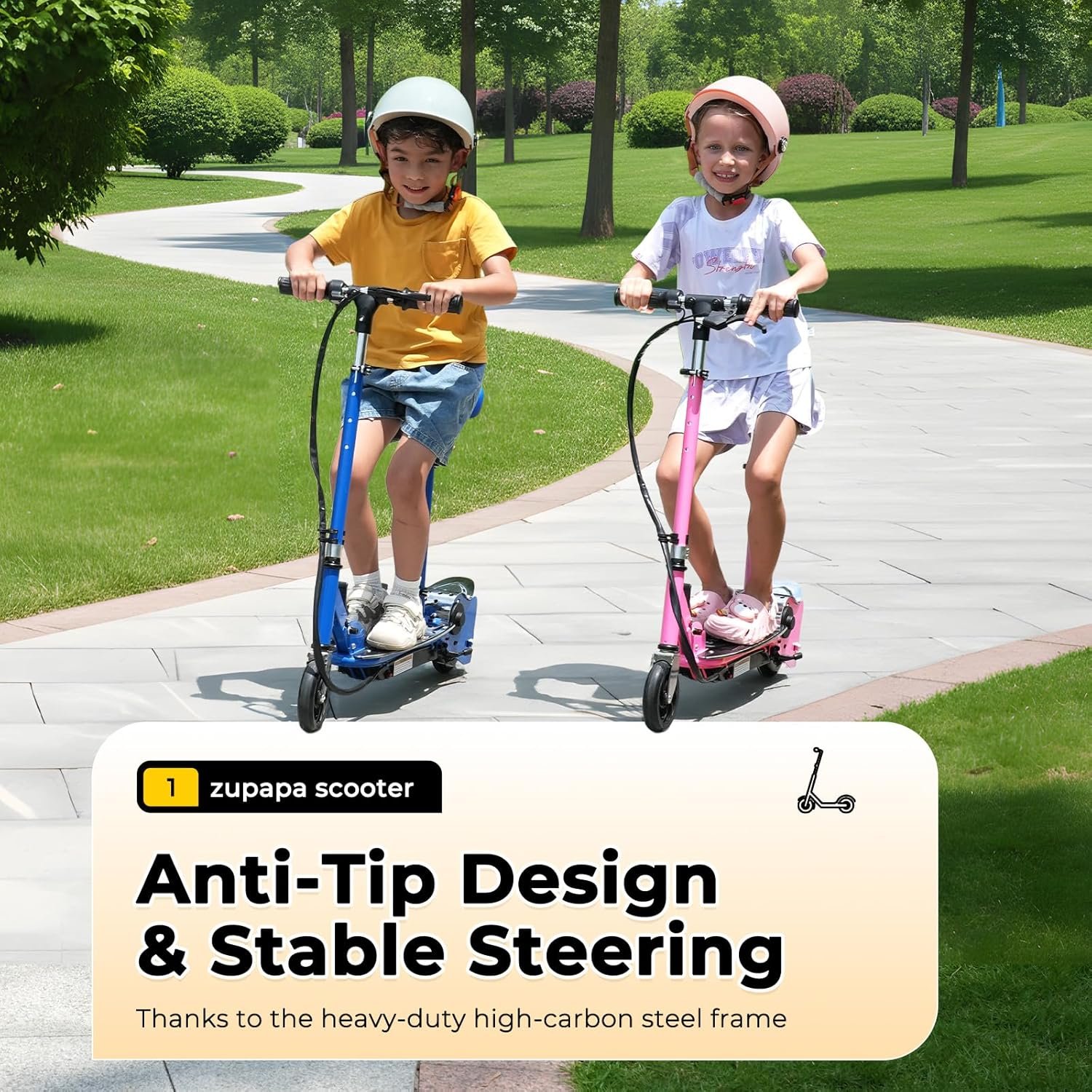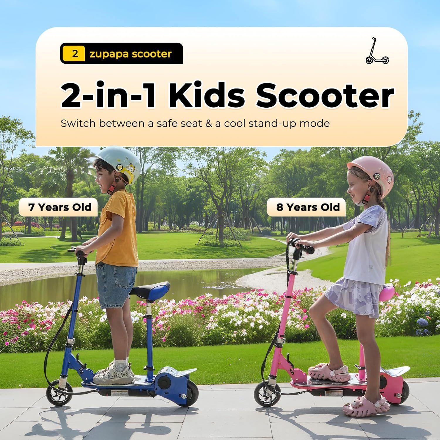 Zupapa Electric Scooter with Seat for Kids Ages 6-12, 6″ Pneumatic Tire, Up to 10 mph and 70 min Ride Time, for Riders up to 155 lbs, Removable Seat 2 Riding Styles