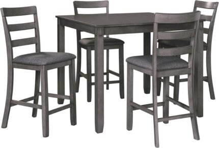 Signature Design by Ashley Bridson 5 Piece Counter Height Dining Room Set, Includes Table & 4 Bar Stools, Gray