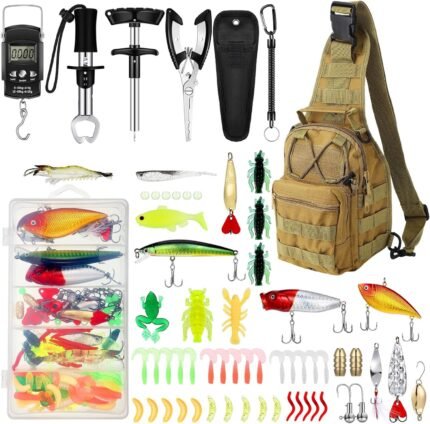 Sosation 134 Pcs Fishing Tool Kit Fishing Gear and Equipment for Men Adults, Include Hook Remover, Pliers Kit, Tackle Box with Tackle Included, Lures, Lip Gripper, Weigh Scale