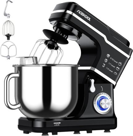 Stand Mixer 6QT Kitchen Mixer with LED Smart Touchscreen, 11-Speed Tilt-Head Mixer with Timer, 4 Preset Menus, Stainless Steel Bowl, Dough Hook, Whisk, Beater
