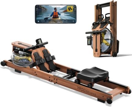 Water Rowing Machine for Home, WENOKER Foldable Wooden Rower with Bluetooth APP & LCD Monitor, Large Water Tank, Comfortable Seat, 350LBS Capacity, Compact Space-Saving Design
