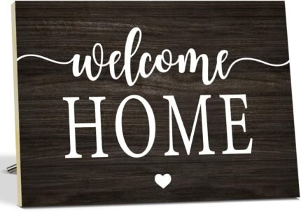 Welcome Sign Wooden Signs Housewarming Gifts For Home Decor, Entryway Sign Wall Art Wooden Plaque Desk Sign With Stand Table Decoration for Women Family -11