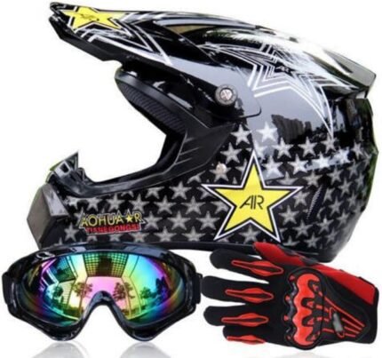 Youth Kids Motocross Full Face Helmets Motorcycle Offroad Combo Helmet ATV Dirt Bike Unisex Protector Motocross Helmet with Gloves Goggles, DOT Standard Certification-US Stock (M/Style 4)